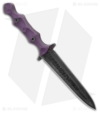 - Rock-textured purple G-10 handle scales over a full tang.