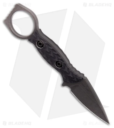 - Textured “carbon” black G-10 scales on a full tang.